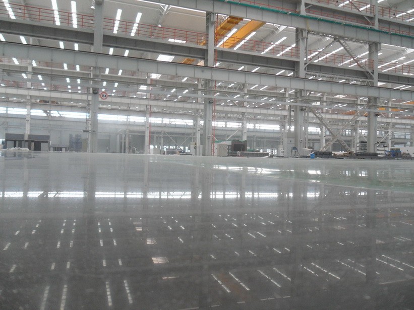 現代工業廠房地面正在將以上兩種地面結合起來,在已做好固態混凝土地面硬化劑的情況下,使用質量可靠的液體混凝土地面硬化劑,配合機器磨光后的成品地面,兼具環氧地坪和金剛砂耐磨地面的優點,同時又避免了這兩種地面缺點,可以說這是一種非常具有推廣意義的工業地面。